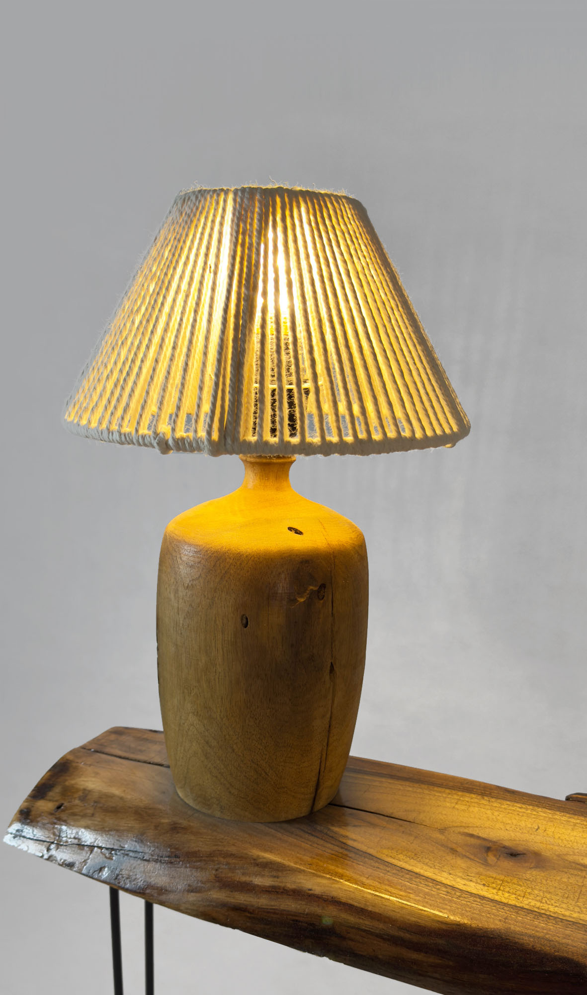 آباژور چوبی دستساز ساخته شده از چوب سنجد، با طراحی مدرن و طبیعی که گرما و اصالت را به فضای خانه یا محل کار شما میآورد.